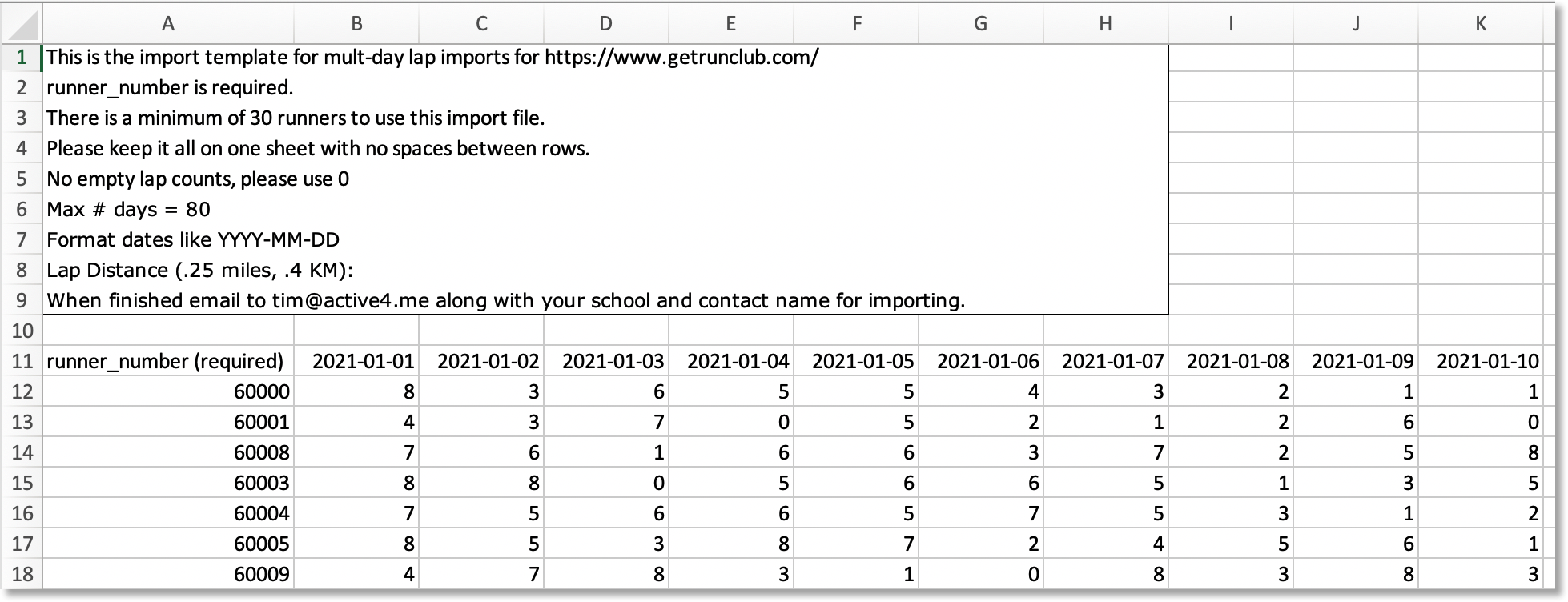Download the runner import template.